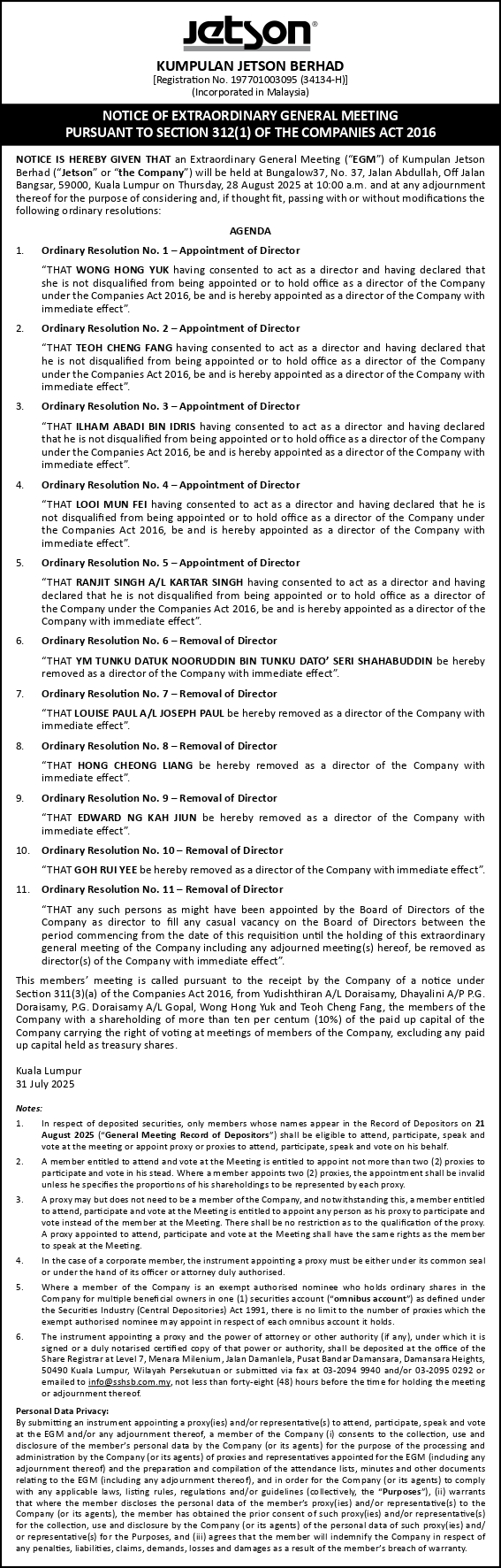 Notice of Extraordinary General Meeting te be held on 28 August 2025